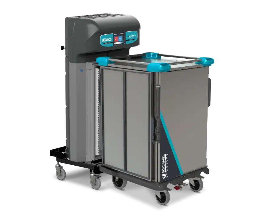 Eine Kombination von Andockstation und Tablettwagen bildet die Verbindung zwischen Küche und Stationen – die perfekte Lösung für das Kühlen und Durcherhitzen von Speisen auf individuell angerichteten Tabletts. Wir sind Erfinder und Pionier dieser Lösung und rüsten seit über 30 Jahren weltweit Kliniken, JVAs und Senioreneinrichtungen damit aus.