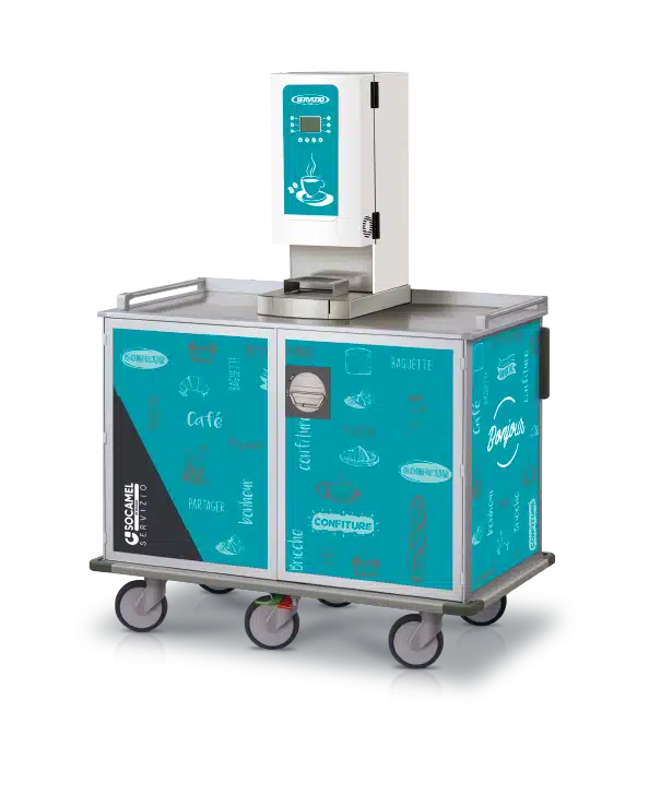 Der SERVIZIO CAFÉ ist die gelungene Kombination eines Frühstückswagens und eines Heißgetränkeautomaten.